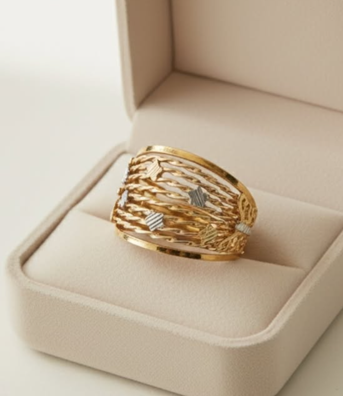 ANEL 4,09G ARMACAO 2 OURO ESTRELAS SUSPENSAS