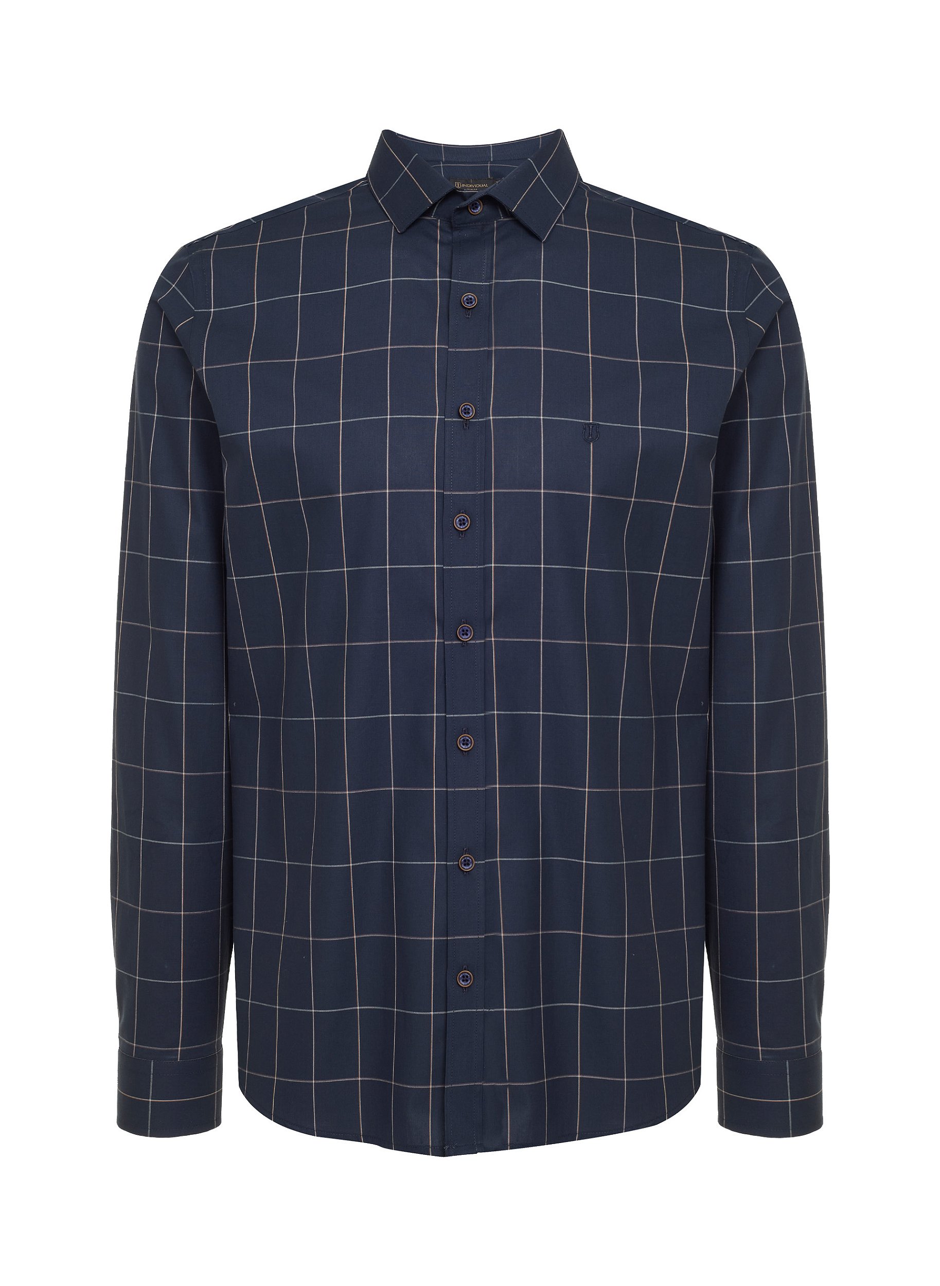 CAMISA ML INDIVIDUAL EGYPTIAN COTTON SLIM FIT 4 XADREZ AZUL MARINHO