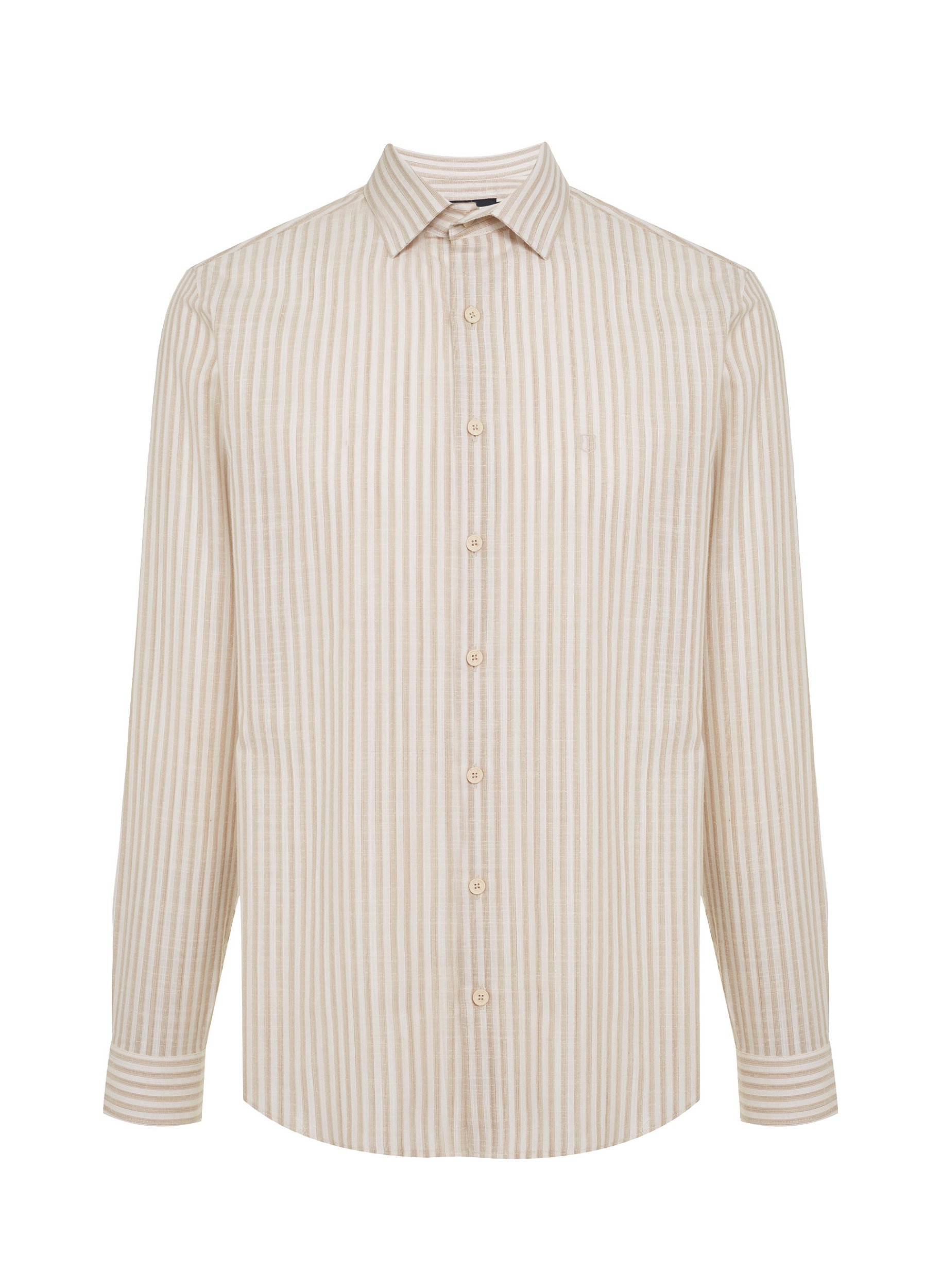 CAMISA ML INDIVIDUAL SLIM FIT 3 LISTADA BEGE MEDIO