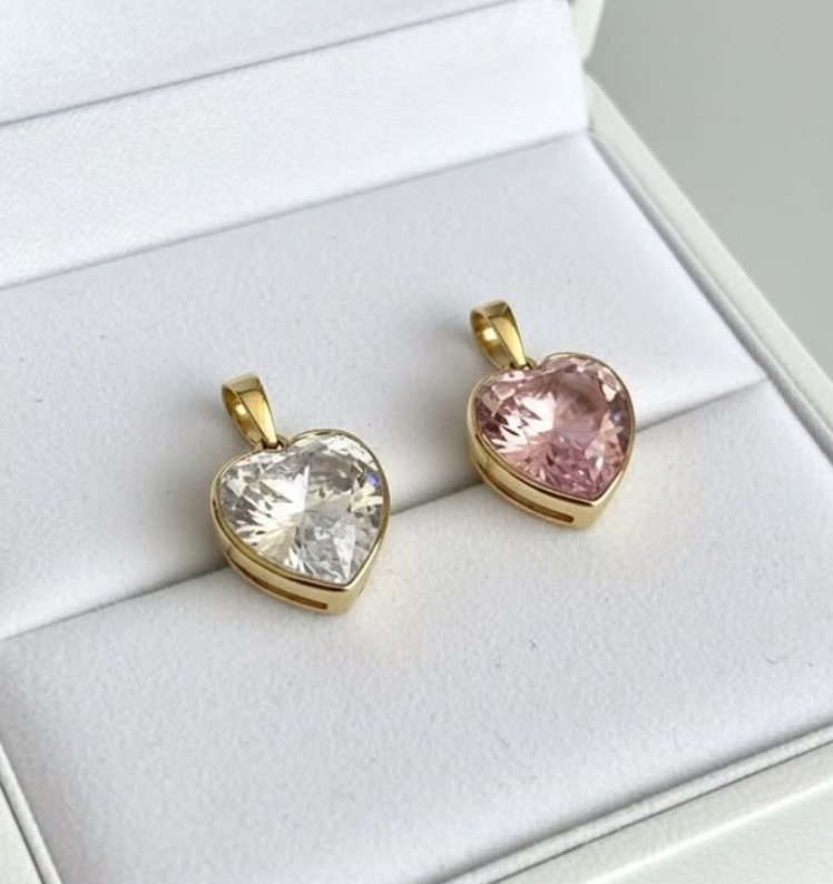 PINGENTE 0,43G PEDRA CORACAO 12MM (ROSA E BRANCO)